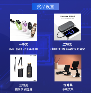 评奖形式:参赛选手按分数的高低进行排序,两名选手得分相同时,则以系统记录的答题时长为依据(答题时间越短则排名靠前)。